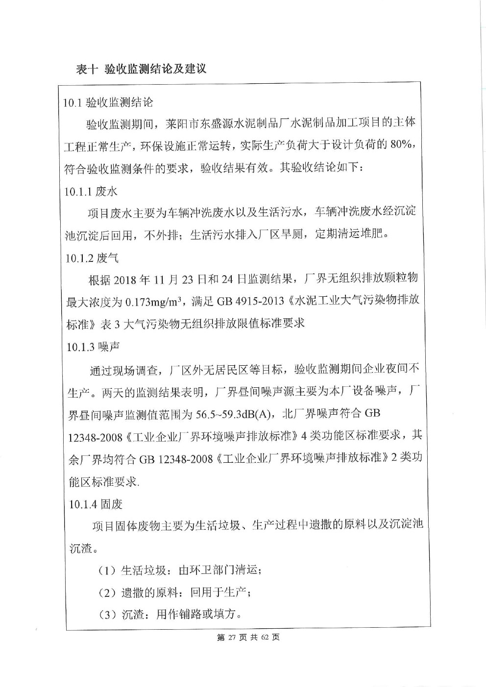 莱阳市东盛源水泥制品厂水泥制品加工项目竣工环境保护验收监测报告表